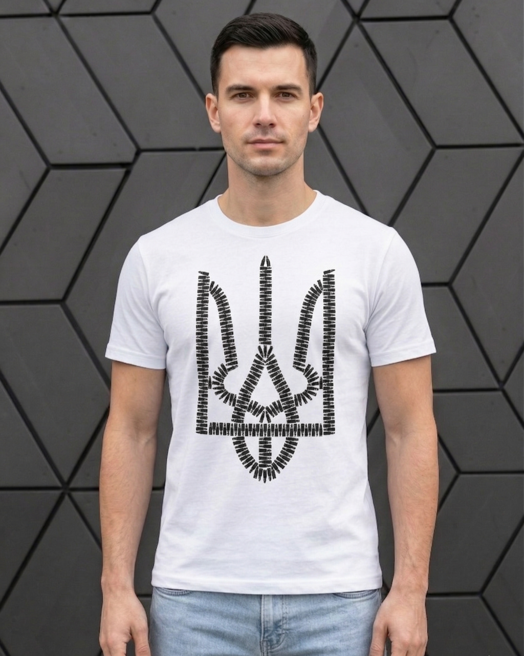 Чоловіча футболка з гербом і з патронами Mishe 11100077-1 Біла