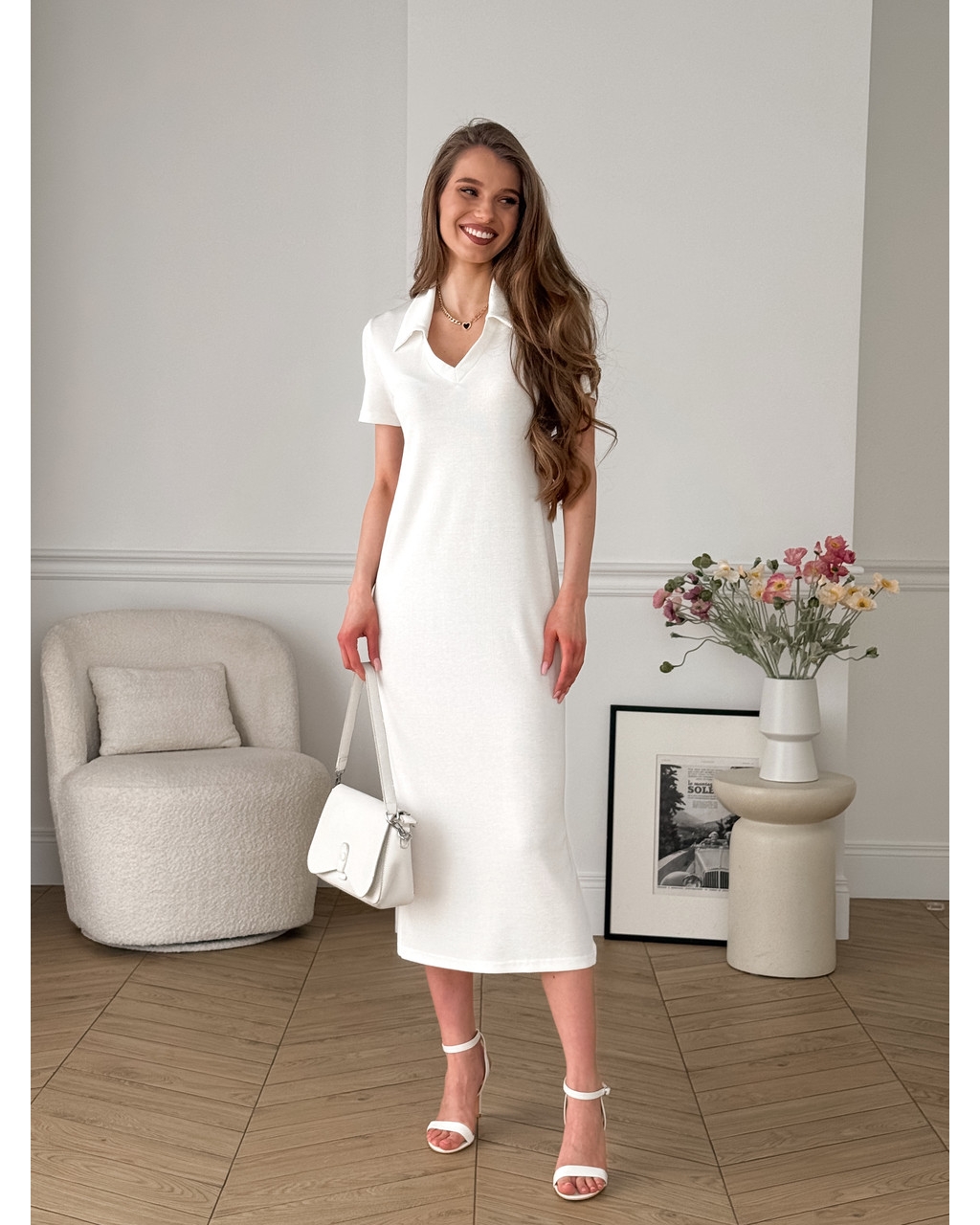 Довга сукня-поло у рубчик біла Bergamo 700002249