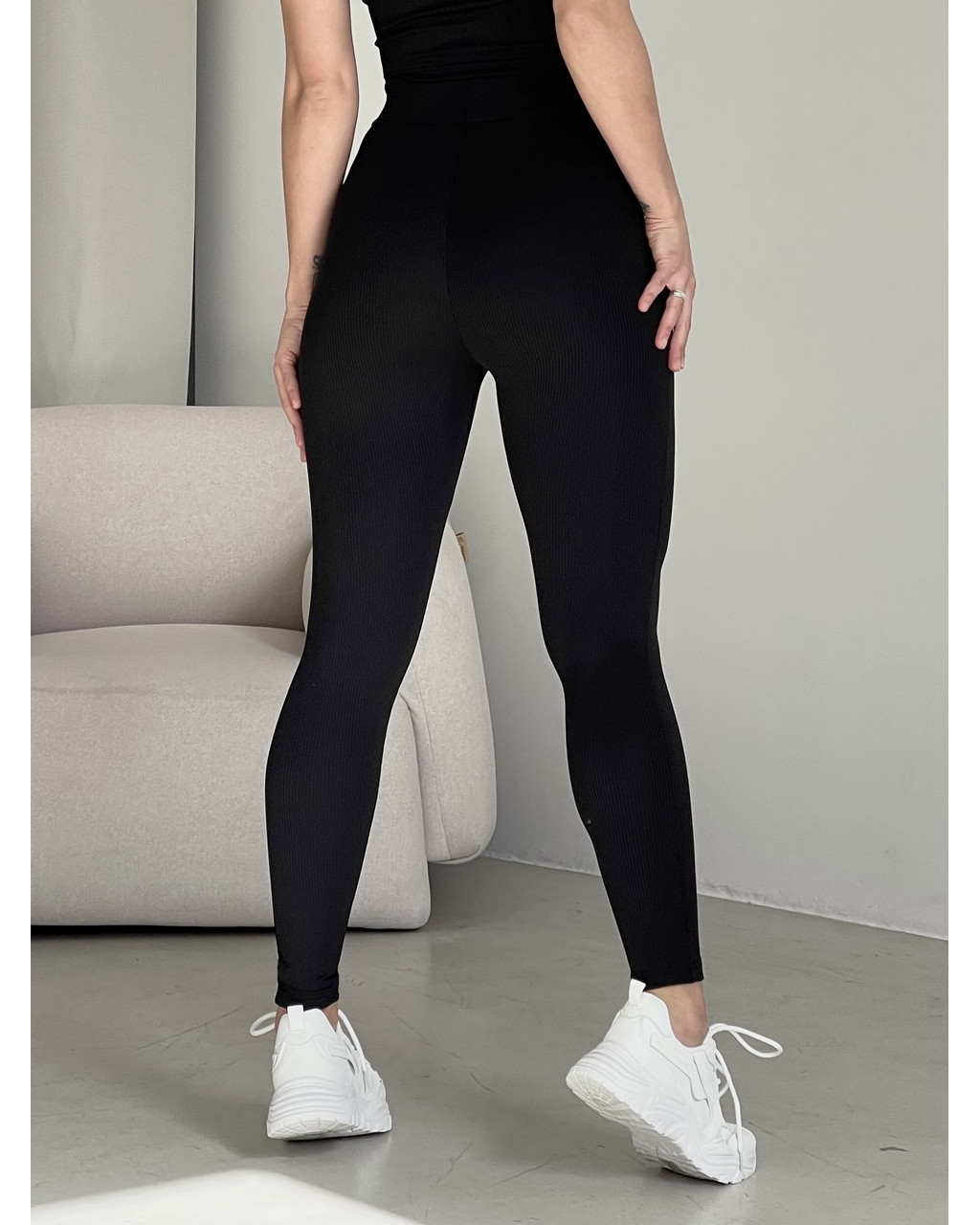 Чорні лосини у рубчик з високою талією Ponto 60000281