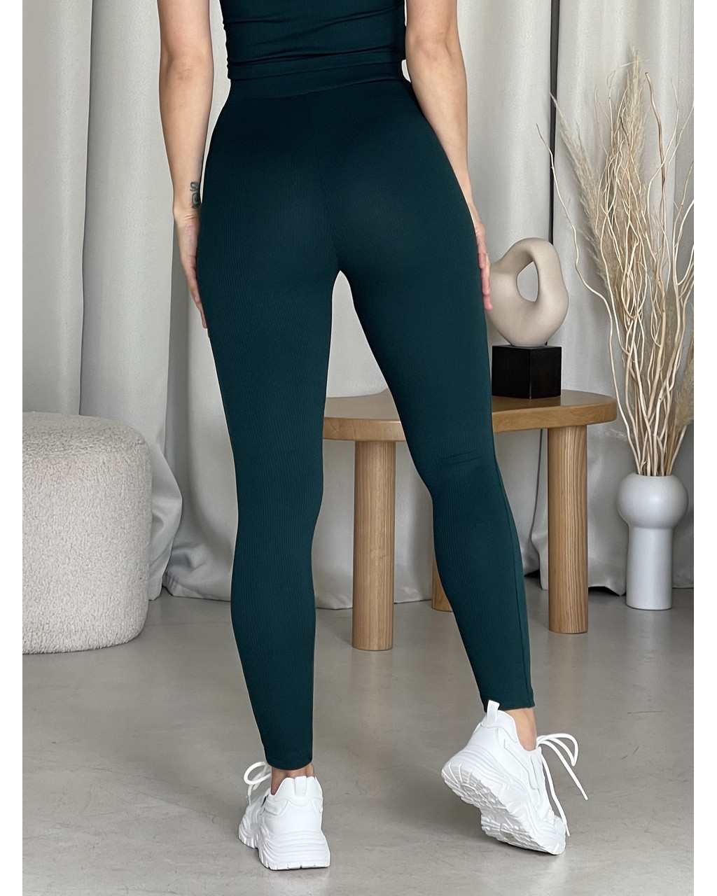 Жіночі лосини з ребристої тканини з високою посадкою. Ребриста тканина дуже добре розтягується в ширину та довжину, лосини не сповзають. Широка гумка, шви посилені силіконом.