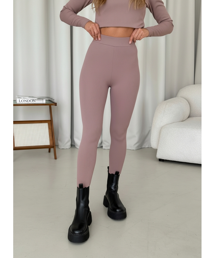 Жіночі лосини в рубчику на флісі з високою посадкою. Лосини створюють ефект утяжки, ідеально облягають тіло. Широка резинка, шви посилені силіконом.