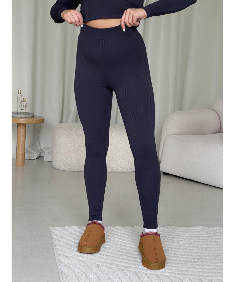 Теплі лосини в рубчик на флісі чорні Merlini Труа