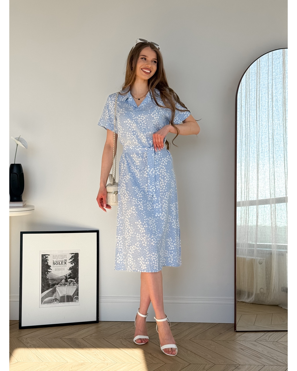 Сукня з комірцем у квіточку з штапельної тканини блакитна Tapi 700002222