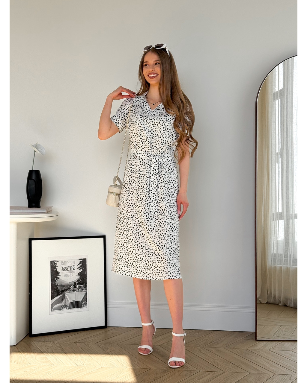 Сукня з комірцем у квіточку зі штапелю біла Tapi 700002223
