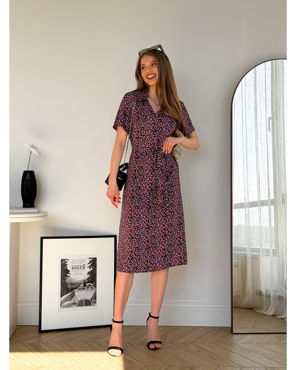 Сукня з комірцем у квіточку з штапелю рожева Tapi 700002227