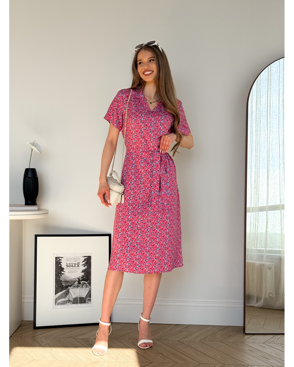 Сукня з комірцем у квіточку з штапелю рожева Tapi 700002227