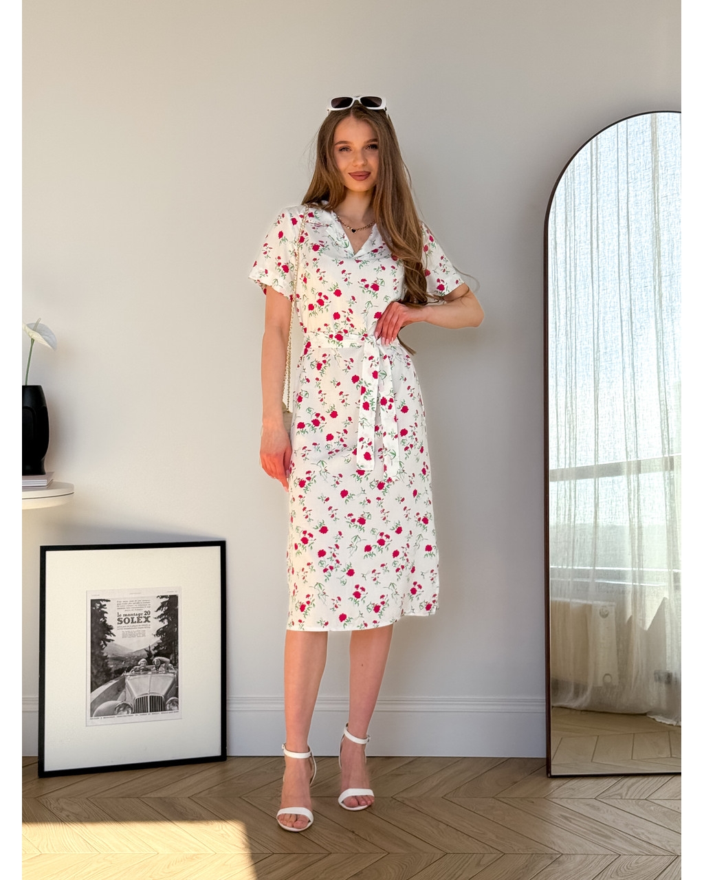 Сукня з комірцем у квіточку зі штапелю біла Tapi 700002223