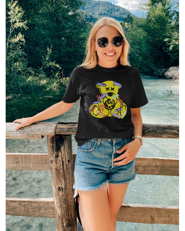 Якщо ви шукаєте джерело натхнення та позитиву, пропонуємо купити жіночі футболки з ведмедиками Тедді, які привертають увагу милими принтами. Ведмідь Тедді є символом романтичності, ніжних почуттів та дружби, тому дизайнерські зображення плюшевої іграшки стануть чудовим доповненням вашого повсякденного образу. Вибирайте у каталозі чудові футболки з яскравими принтами Teddy Bear, які завдяки універсальному крою підійдуть для дівчат та дівчаток з різною фігурою.