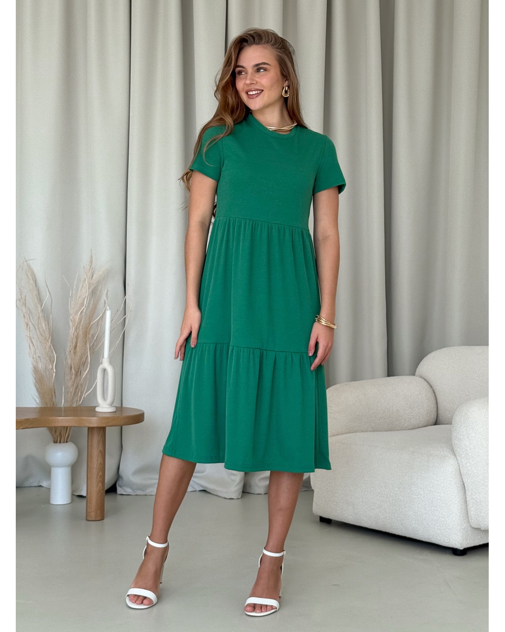 Сукня з вільними стегнами в рубчик зелена Redjo 700001588