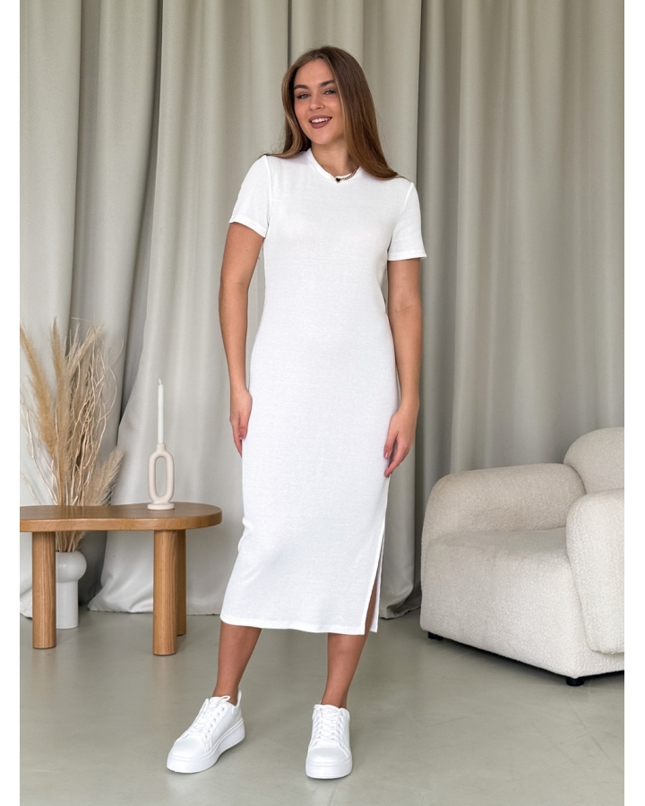 Длинное платье-футболка в рубчик белое Merlini Кассо 700000126