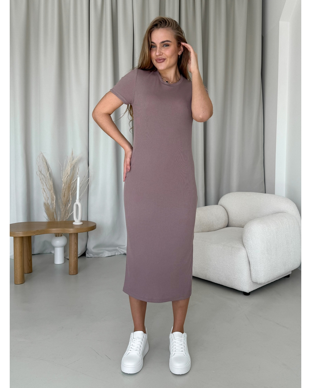 Длинное платье-футболка в рубчик цвета мокко Kasso 700000124