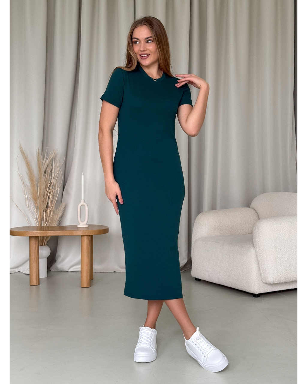 Длинное платье-футболка в рубчик зеленое Kasso 700000132