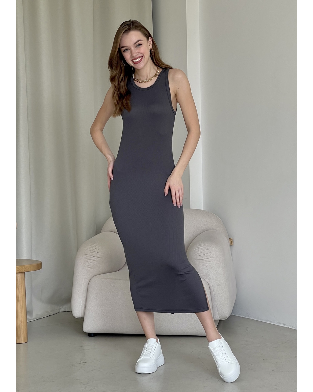 ⚡Длинное платье-майка в рубчик с разрезом ниже колена.