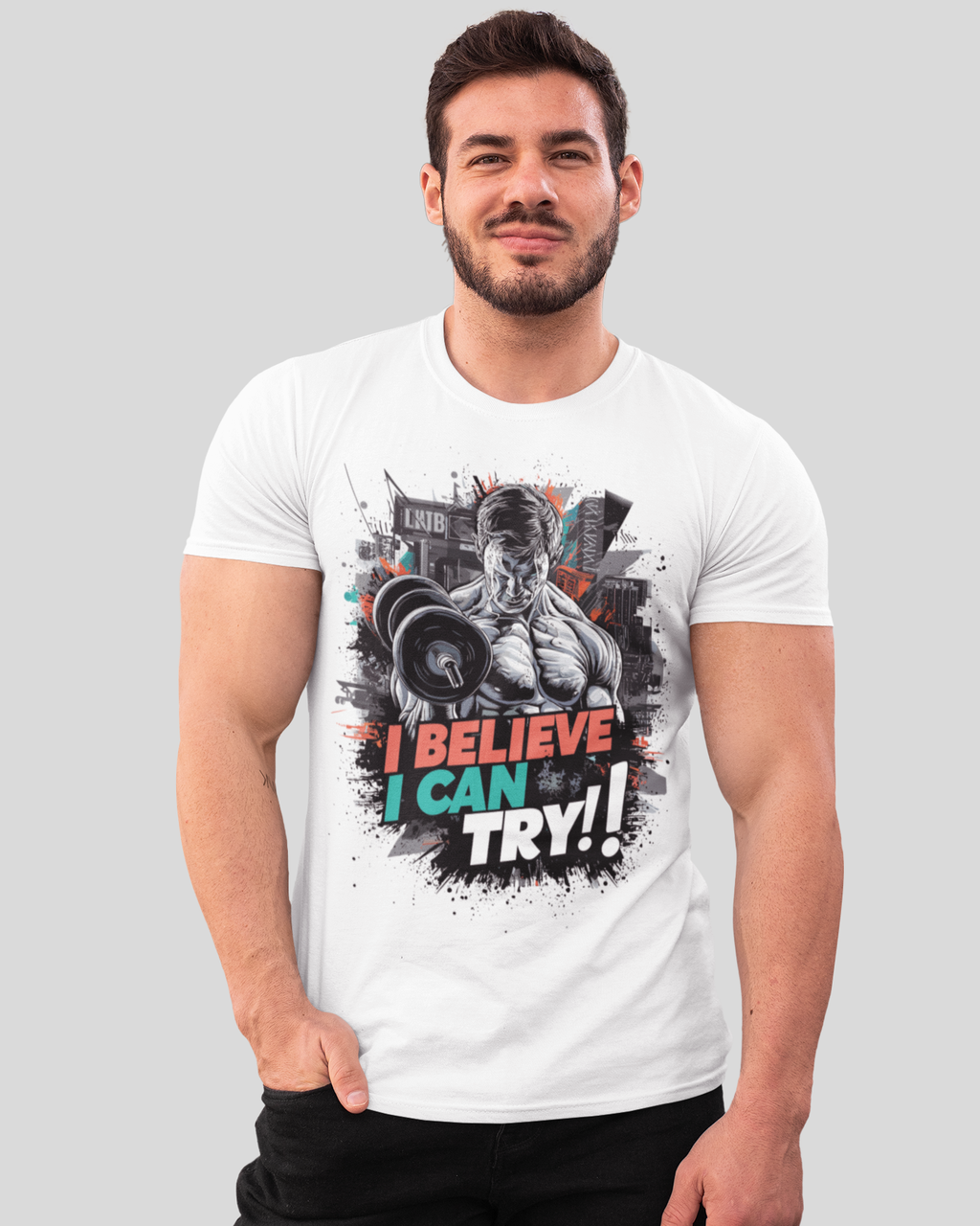 Мужская спортивная футболка "I believe i can try" Mishe 11320019-1 белая