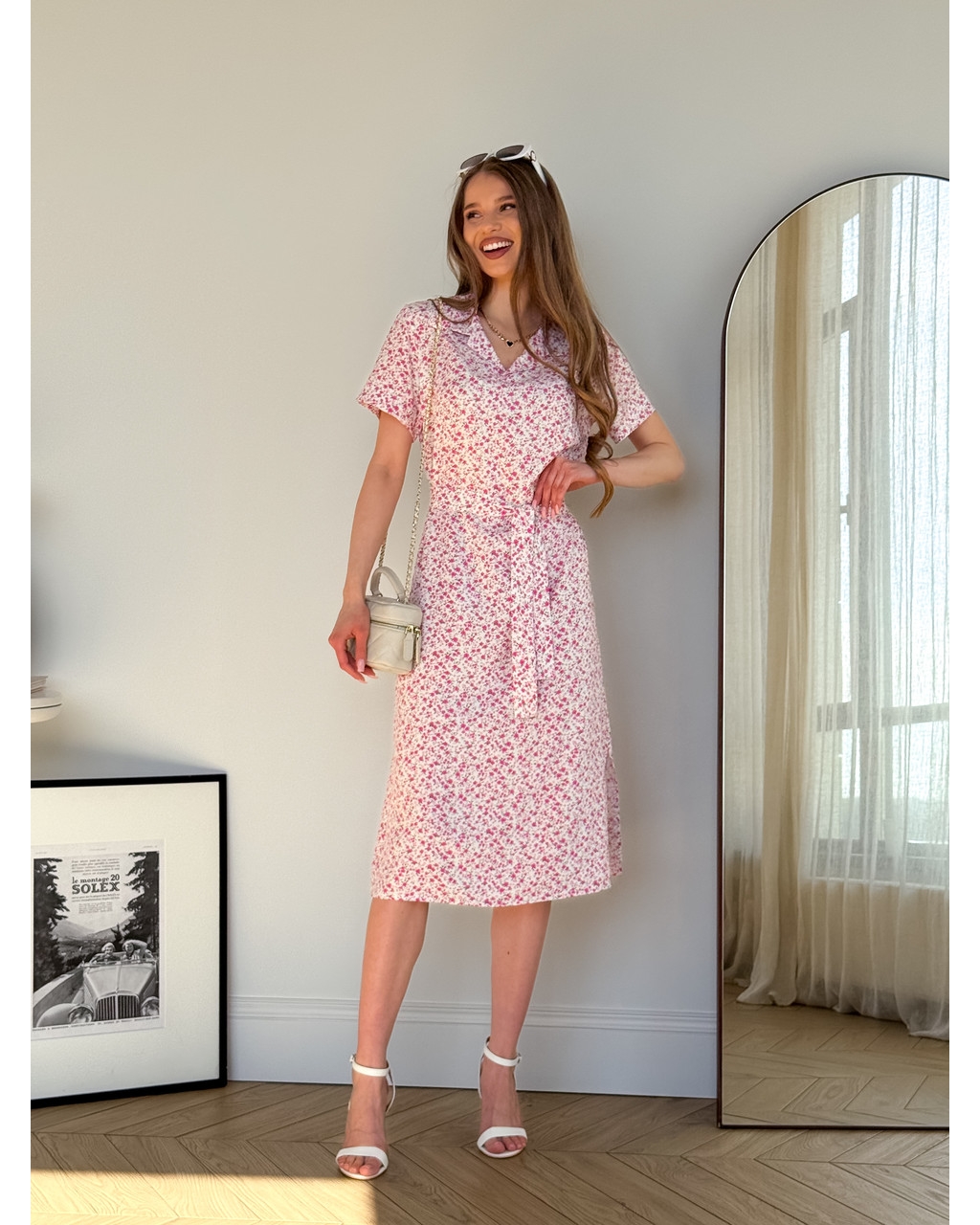 Платье с воротничком в цветочек из штапеля розовое Tapi 700002227