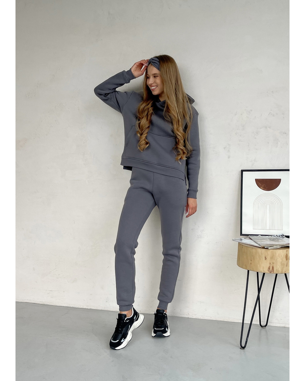 Теплый зимний спортивный костюм на флисе. Укороченная худоба с боковыми разрезами. Манжеты по довязи.