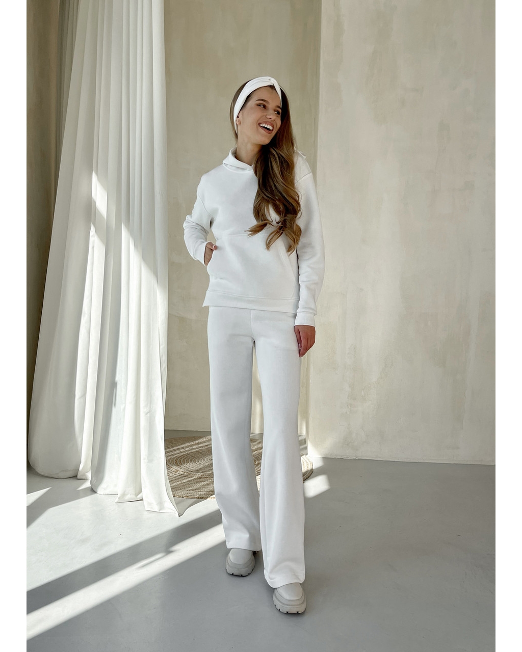 Теплый костюм с широкими штанами и худи белый Merlini Тулон 100001067