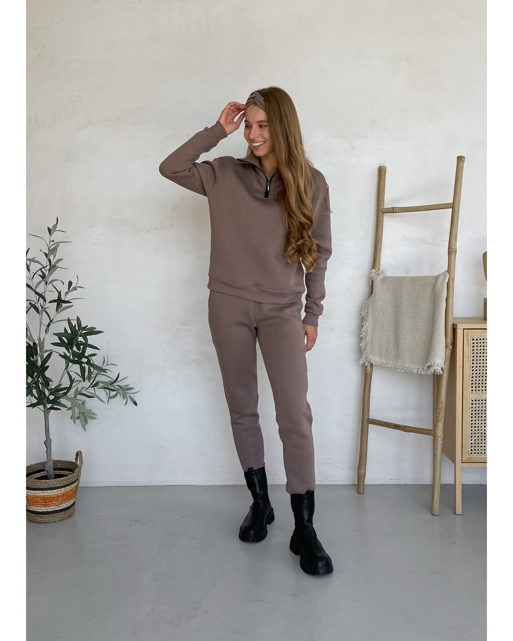 Теплый женский костюм с кофтой на молнии бежевый Merlini Анже 100001084
