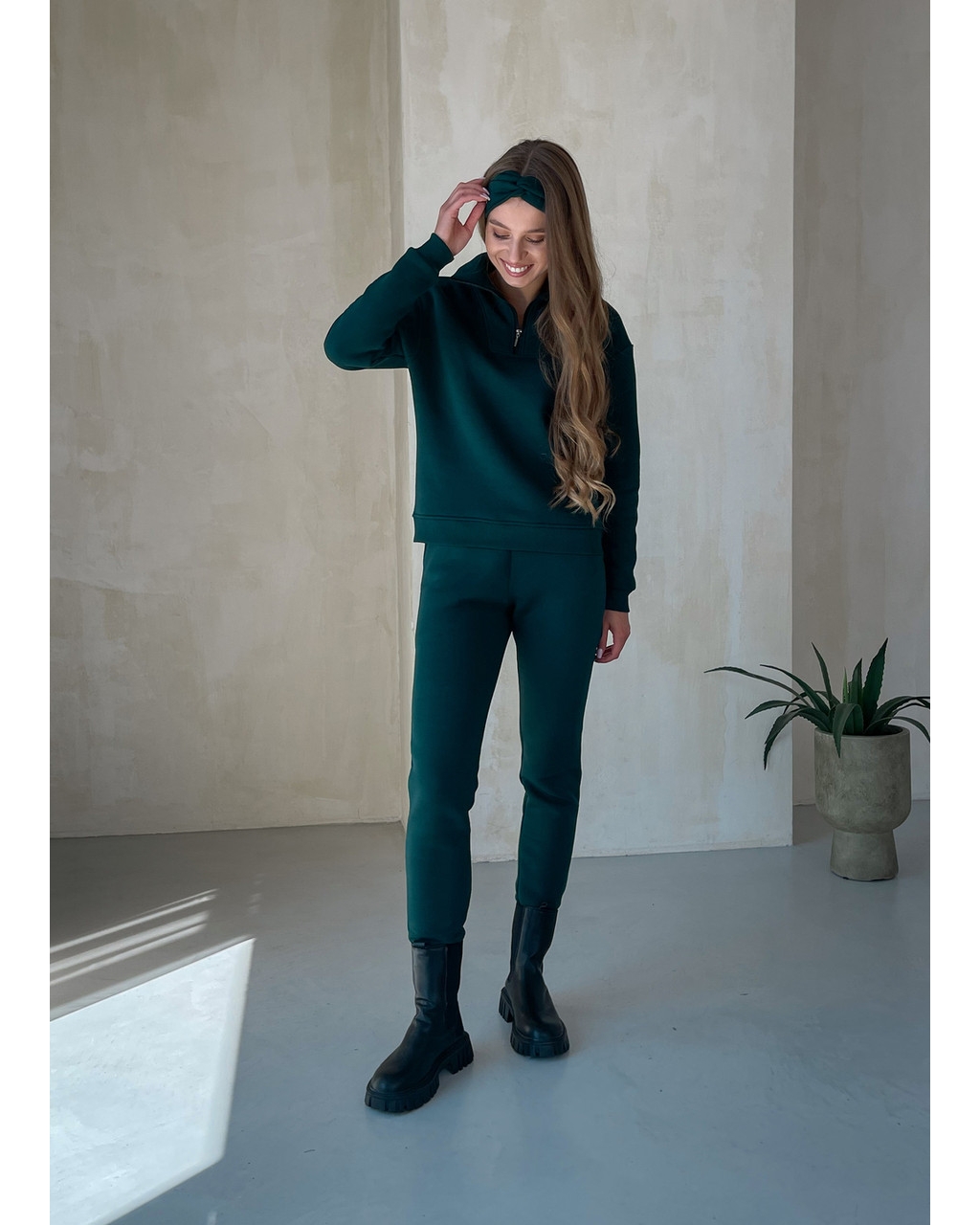 Теплый женский костюм с кофтой на молнии зелёный Merlini Анже 100001082