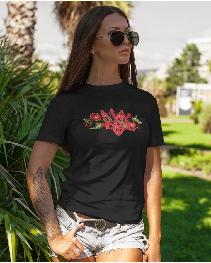 Патриотичный принт - изюминка базовой футболки. Такая деталь в образе подчеркнет активную гражданскую позицию и солидарность с народом Украины.