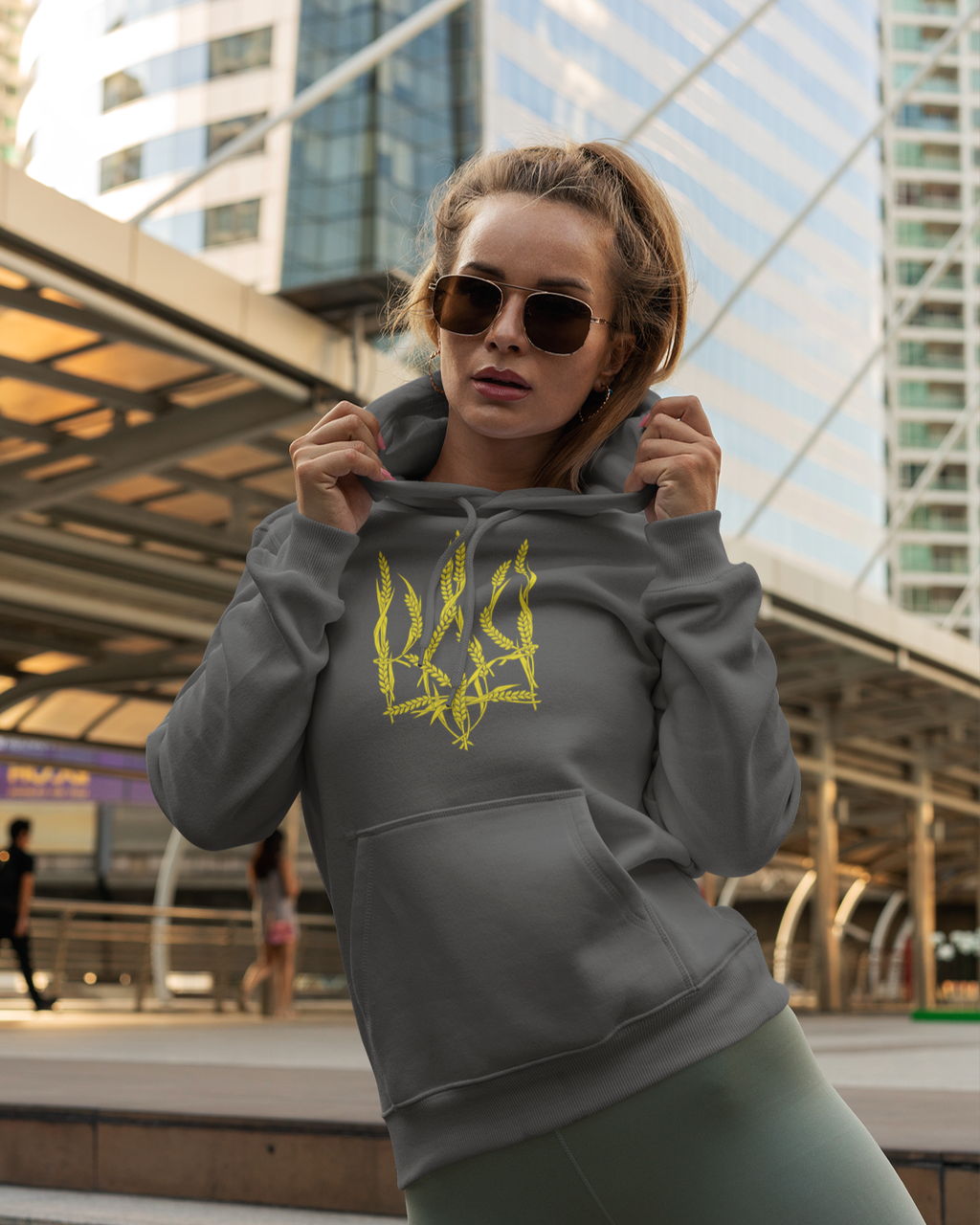 Толстовка трёхнитка женская патриотическая тёмно-серый Mishe 22000015