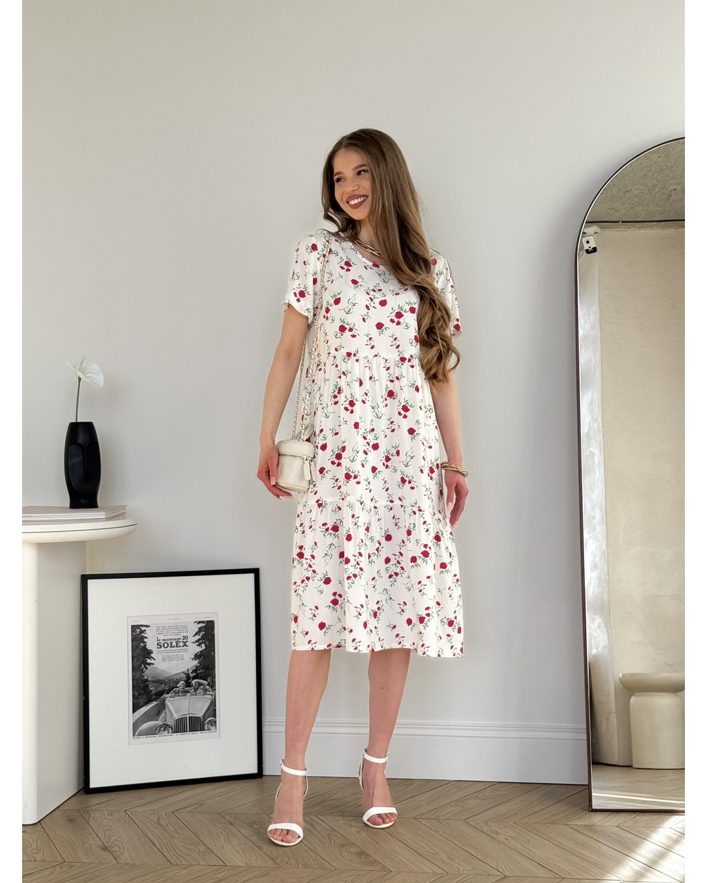 Летнее платье из штапеля в цветочек белое Kazerta 700001888