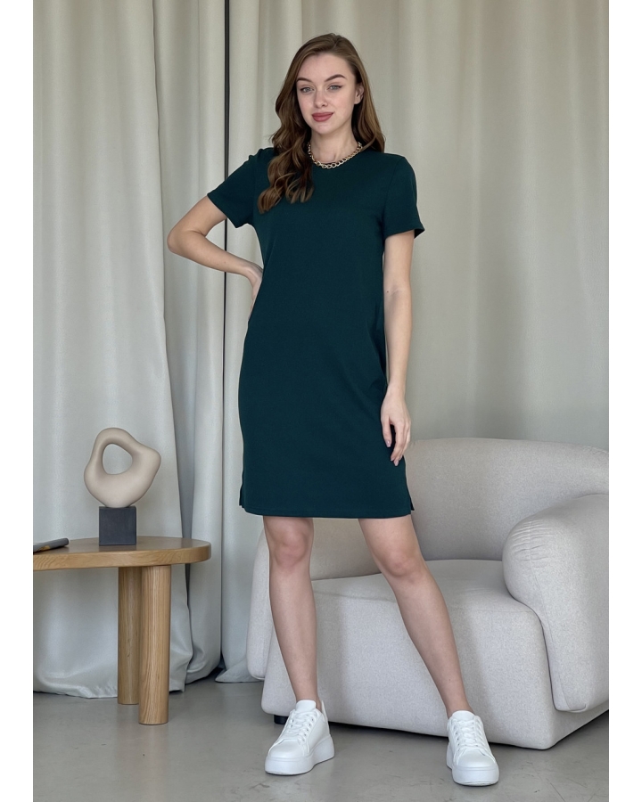 Платье-футболка до колена в рубчик зеленое Merlini Милан 700000152