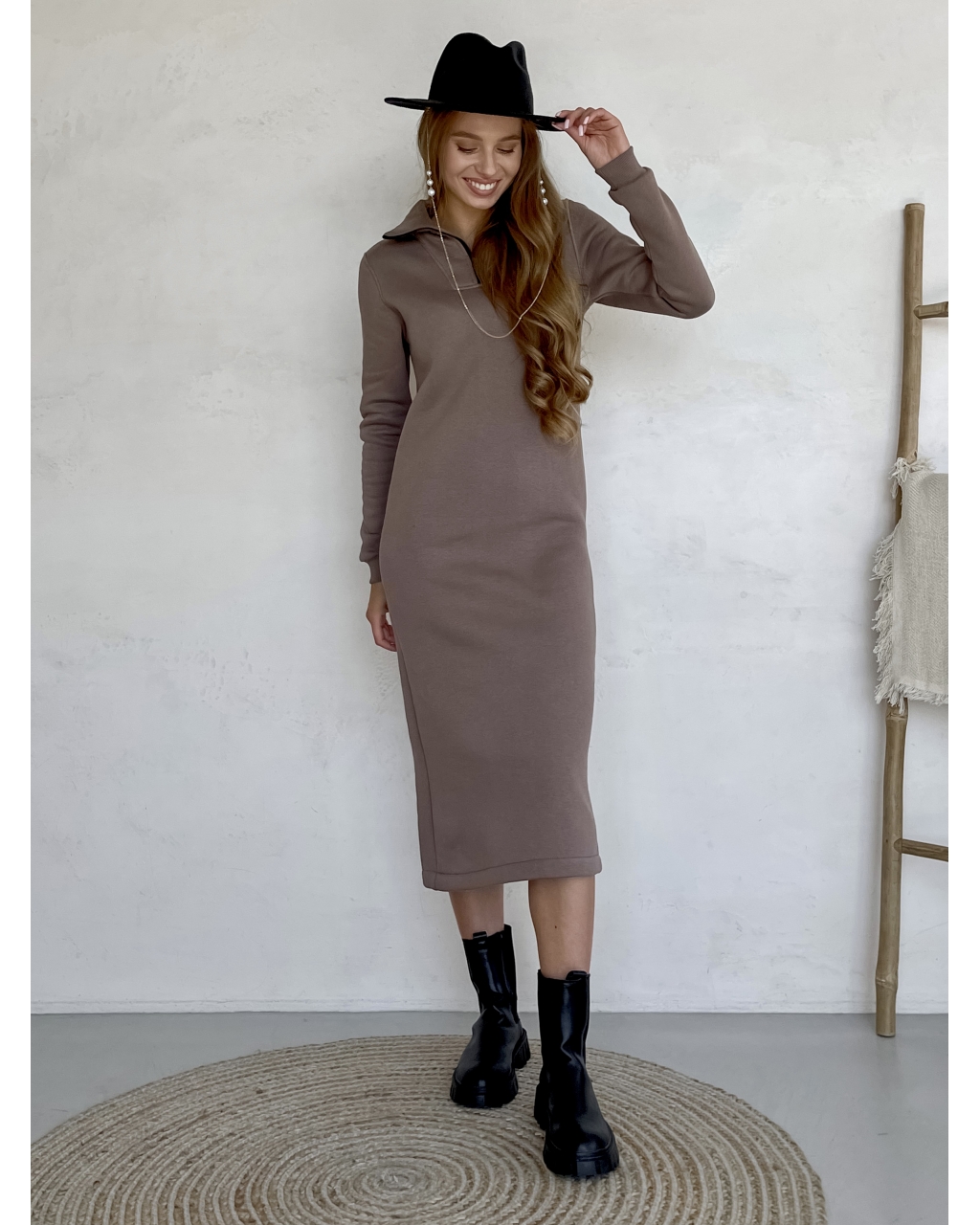 Теплое зимнее длинное платье на флисе. Горловина с замком, разрез сзади, манжеты из довяза.